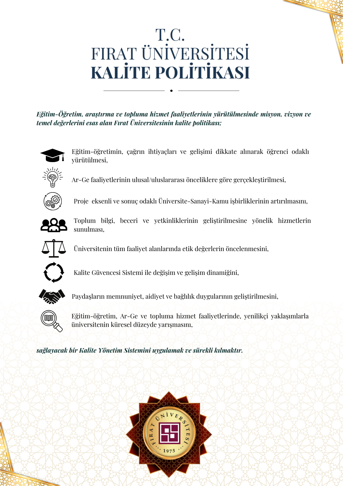 - Kalite Politikamız, Kalite Yönetim Sisteminin standartlarına uygun olarak dokümante edilmekte ve öz değerlendirme süreçleri ile tüm faaliyetlerimiz belirli aralıklarla gözden geçirilmektedir.